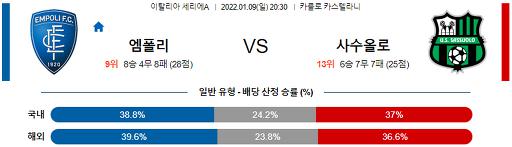 세리에A 1월 9일 20:30 엠폴리 : US 사수올로 칼초