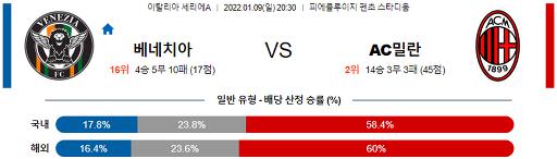 세리에A 1월 9일 20:30 베네치아 FC : AC 밀란