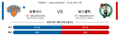 1월 7일 NBA분석 뉴욕 : 보스턴
