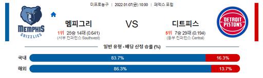 1월 7일 NBA분석 멤피스 : 디트로이트