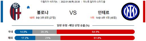 세리에A 1월 6일 20:30 볼로냐 FC : 인터 밀란