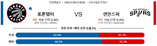 1월 5일 09:00 NBA분석 토론토 : 샌안토니오