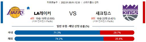 1월 5일 12:30 NBA분석 LA레이커스 : 새크라멘토