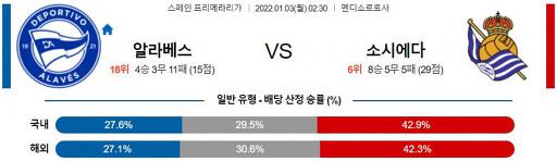 프리메라리가 1월 3일 02:30 알라베스 : 레알 소시에다드