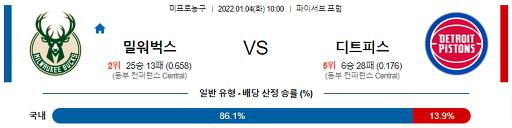 1월 4일 10:00 NBA분석 밀워키 : 디트로이트