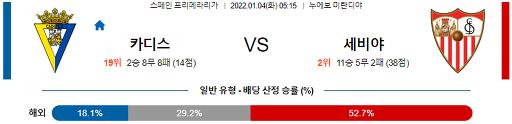 프리메라리가 1월 4일 05:15 카디스 CF : 세비야 FC