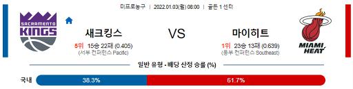 1월 3일 08:00 NBA분석 새크라멘토 : 마이애미