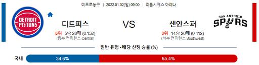 1월 2일 NBA분석 디트로이트 : 샌안토니오
