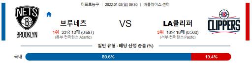 1월 2일 09:30 NBA분석 브루클린 : LA클리퍼스