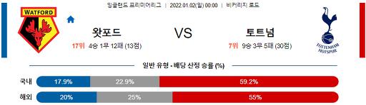 프리미어리그 1월 2일 00:00 왓포드 : 토트넘 훗스퍼