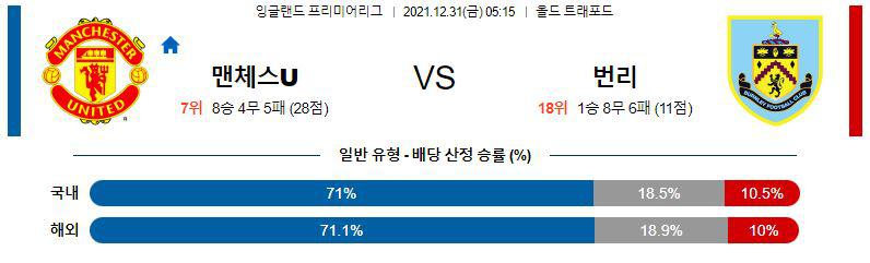 [프리미어리그] 12월31일 맨체스터 유나이티드(맨유) vs 번리 FC