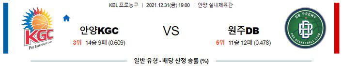 [KBL] 12월 31일 안양 KGC vs 원주 동부 DB