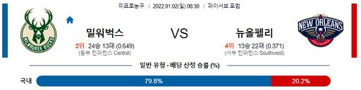 1월 2일 08:30 NBA분석 밀워키 : 뉴올리언스