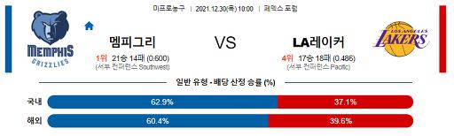 12월 30일 NBA분석 멤피스 : LA레이커스