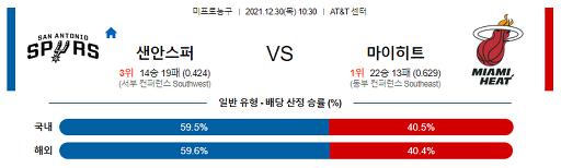 열람중 12월 30일 NBA분석 샌안토니오 : 마이애미 2021.12.29 404