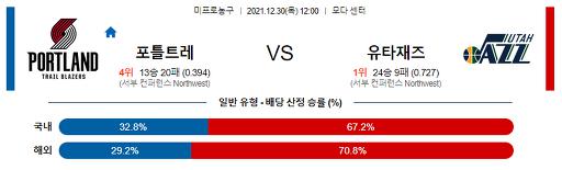 열람중 12월 30일 NBA분석 포틀랜드 : 유타 2021.12.29 445