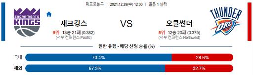 12월 29일 12:00 NBA분석 새크라멘토 : 오클라호마시티