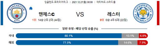 프리미어리그 12월 27일 00:00 맨체스터 시티 : 레스터 시티