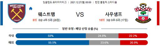 프리미어리그 12월 27일 00:00 웨스트햄 : 사우샘프턴