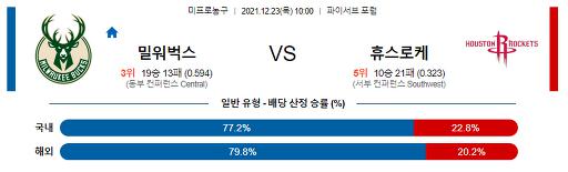 12월 23일 NBA분석 밀워키 : 휴스턴