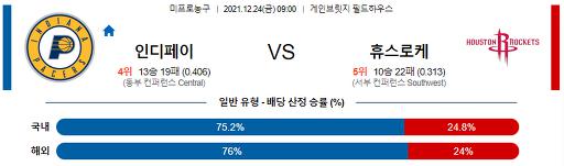 12월 24일 09:00 NBA분석 인디애나 : 휴스턴