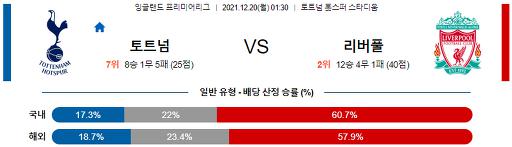 프리미어리그 12월 20일 01:30 토트넘 훗스퍼 : 리버풀