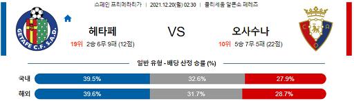 프리메라리가 12월 20일 02:30 헤타페 CF : CA 오사수나
