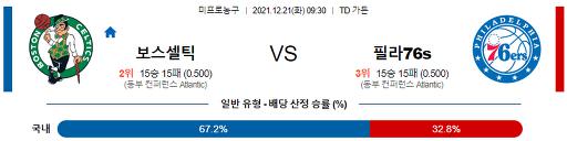 12월 21일 09:30 NBA분석 보스턴 : 필라델피아