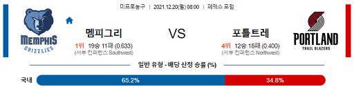 12월 20일 08:00 NBA분석 멤피스 : 포틀랜드
