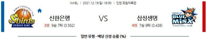 [WKBL] 12월 19일 신한은행 vs 삼성생명