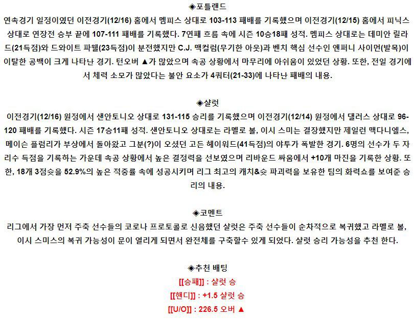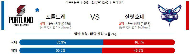 【NBA】 12월18일 포틀랜드 vs 샬럿