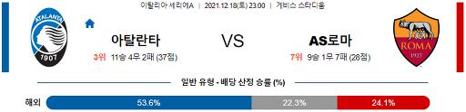 세리에A 12월 18일 23:00 아탈란타 BC : AS 로마