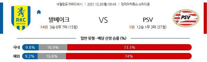 [에레디비시] 12월20일 발베이크 vs PSV아인트호벤
