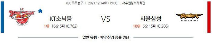 열람중 【KBL】 12월 14일 KT 소닉붐 vs 서울 삼성 2021.12.14 415