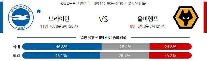 [프리미어리그] 12월16일 브라이턴 vs 울버햄튼