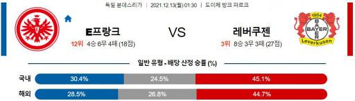 분데스리가 12월 13일 01:30 프랑크푸르트 : 레버쿠젠