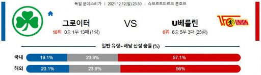 분데스리가 12월 12일 23:00 SpVgg 그로이터 퓌르트 : 유니온 베를린