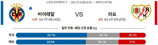 프리메라리가 12월 12일 22:00 비야레알 : 라요 바예카노
