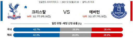 열람중 프리미어리그 12월 13일 01:30 크리스탈 팰리스 : 에버턴 2021.12.13 420