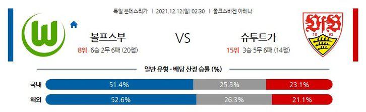 【분데스리가】 12월12일 볼프스부르크 vs 슈투트가르트