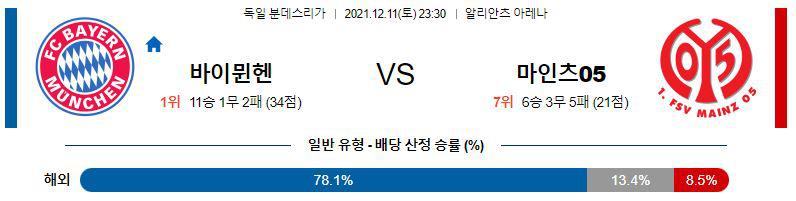 [분데스리가] 12월 11일 바이에른 뮌헨 vs FSV 마인츠 05