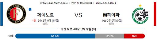 유로파리그 12월 10일 05:00 페예노르트 : 마카비 하이파 FC