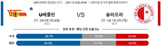유로파리그 12월 10일 05:00 유니온 베를린 : 슬라비아 프라하