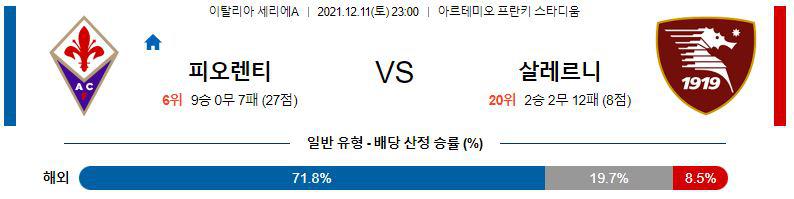 [세리에A] 12월 11일 ACF 피오렌티나 vs US 살레르니타나