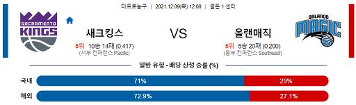 12월 9일 12:00 NBA분석 새크라멘토 : 올랜도