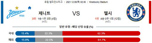 챔피언스리그 12월 9일 02:45 제니트 : 첼시