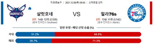 12월 9일 09:00 NBA분석 샬럿 : 필라델피아