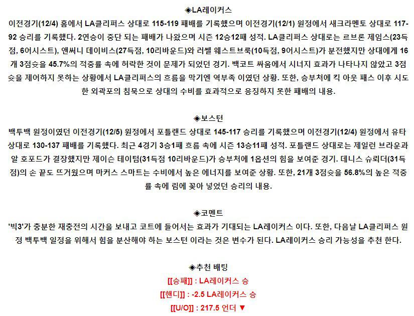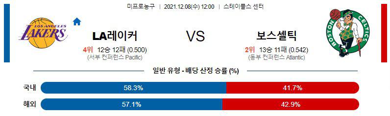 【NBA】12월 8일 LA레이커스 vs 보스턴