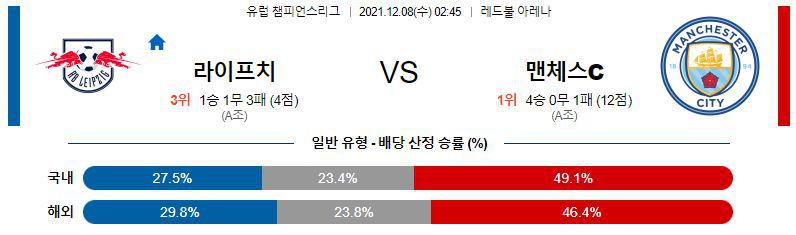[유럽챔피언스리그] 12월8일 RB 라이프치히 vs 맨체스터시티