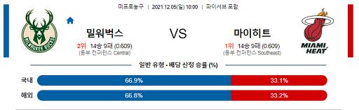 열람중 12월 5일 NBA분석 밀워키 : 마이애미 2021.12.05 472